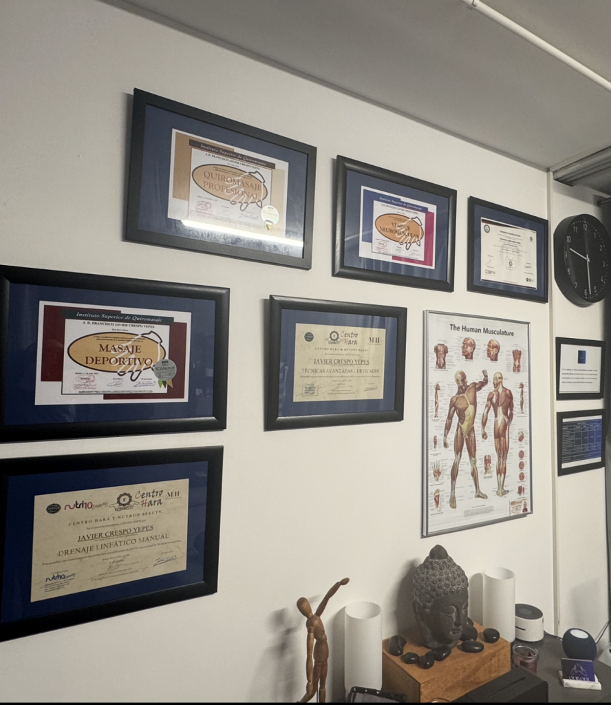 Tras la finalización de esta formación en Madrid decidí seguir ampliando mis conocimientos formándome en el Centro Hara (www.haraformacion.com) de Fuengirola obteniendo la certificación y el diploma en Drenaje Linfático Manual y posteriormente en Técnicas Cervicales Avanzadas. Sin duda una de las mejores escuelas de España con proyección internacional gracias a su Director y gran maestro Sergio Martín Jimenez que, con sus expertos conocimientos, su simpatía y su forma de impartir los cursos y seminarios, invita a querer seguir avanzando en este apasionante mundo de las terapias naturales utilizando el exclusivo Método Hara de capacitación.
